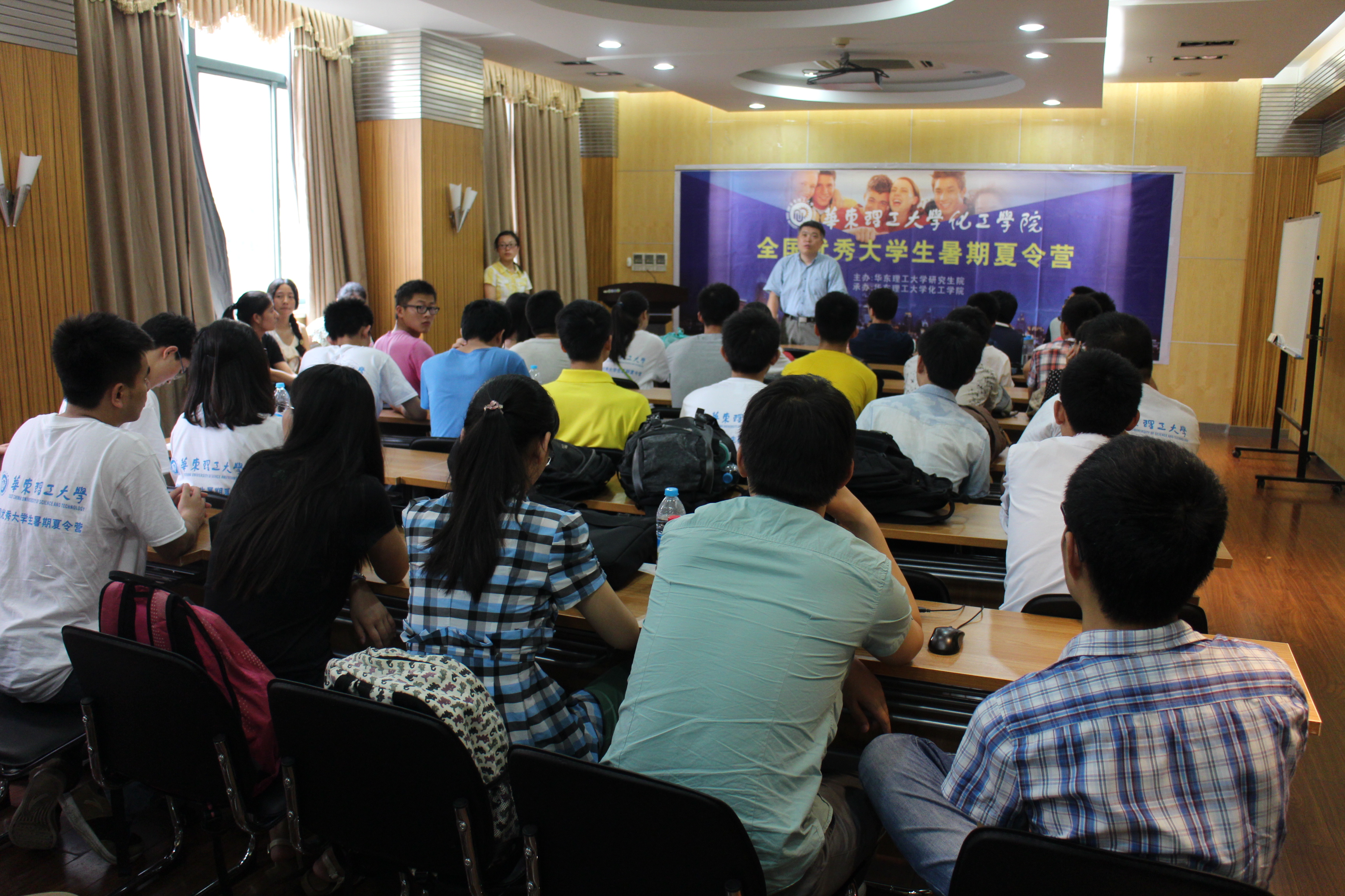 辛忠院长代表学院院热烈欢迎各位同学参与夏令营活动,并对化工学院的发展历史、科研实力等进行了介绍,他希望同学们深入了解华东理工大学,了解化工学院,认真学习,增进友谊,并邀请同学们参与化工学院的科研工作。