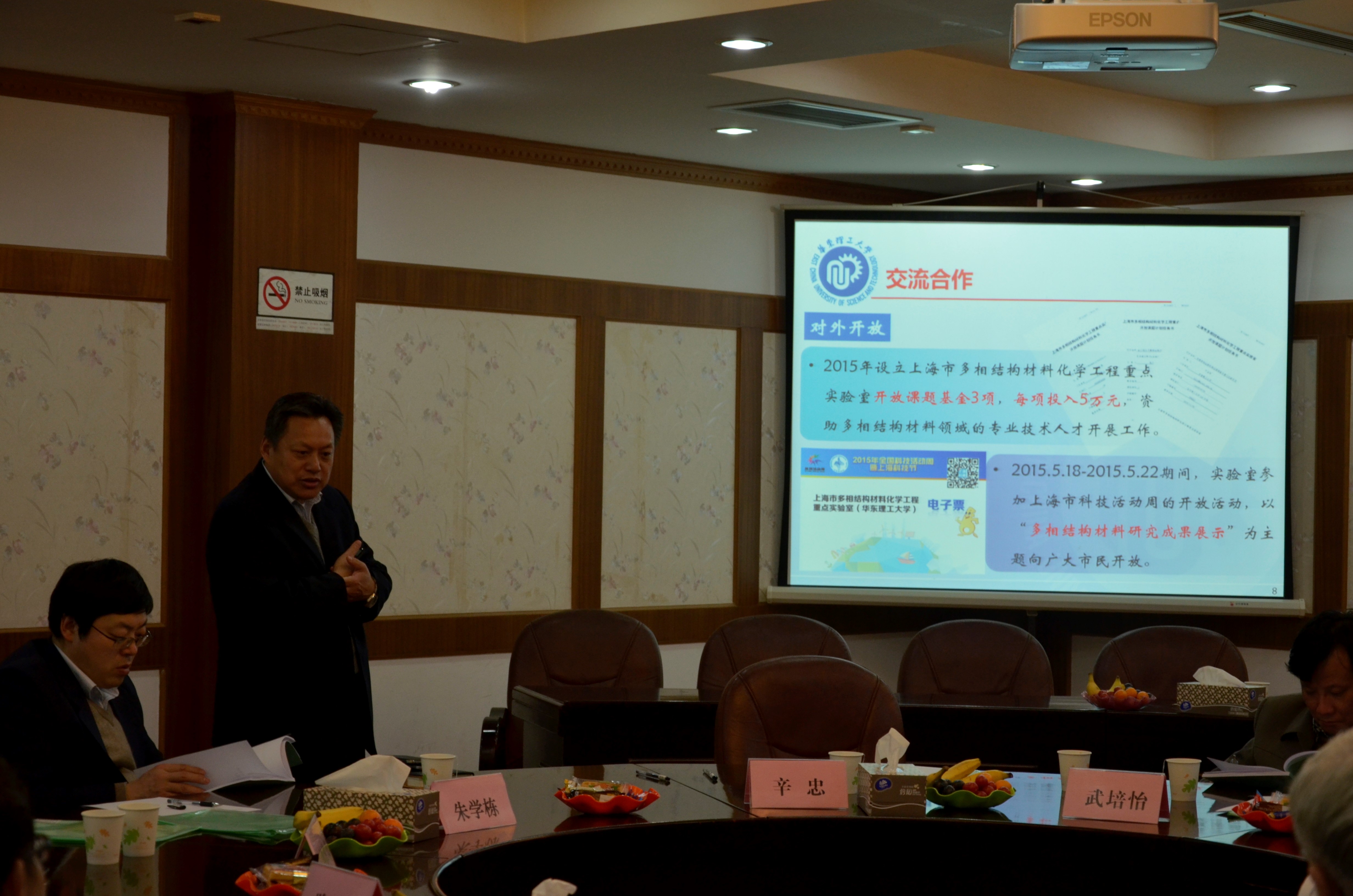 会上,朱学栋院长致欢迎词,介绍了学校国家级、省部级科研基地和工程中心的情况,肯定了“上海市多相结构材料化学工程重点实验室(筹)”的获批和建设对于华东理工大学发展的重要意义,并对其未来发展寄予的殷切希望。重点实验室主任辛忠教授做实验室工作报告,汇报了2015年度实验室承担任务、队伍建设、交流合作、运行管理等方面情况,并介绍了实验室发展思路。实验室主要学术骨干周晓东教授、周生虎教授、孙胜童博士分别做了“碳纤维增强聚合物基复合材料高强度、高韧性界面结构的构筑”、“新型高效加氢脱氯催化剂研制及应用”和“初级碳酸钙纳米粒子的结晶行为及仿生材料的制备”的学术报告。