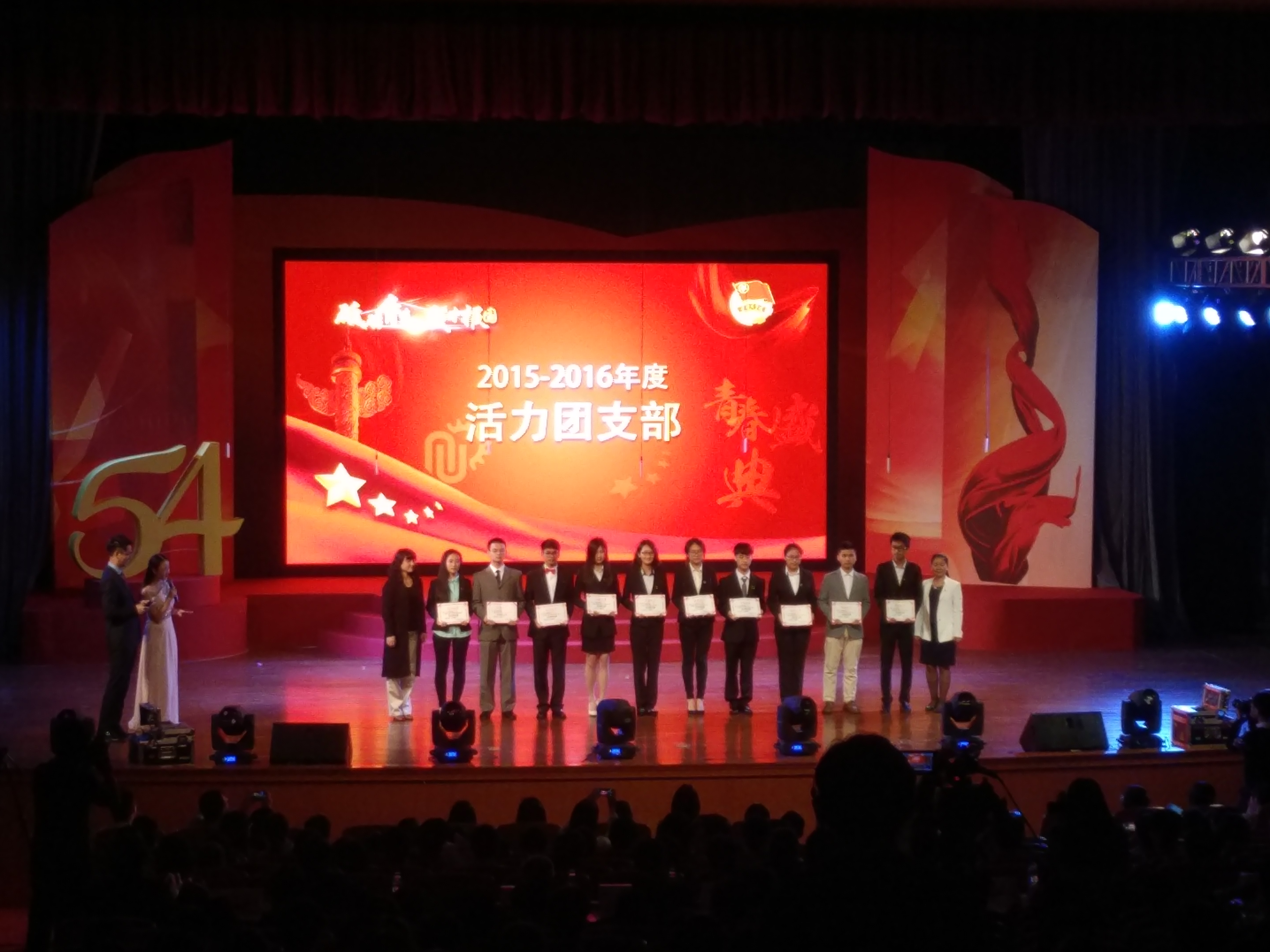 学院十个团支部作为全校“活力团支部”代表上台领奖