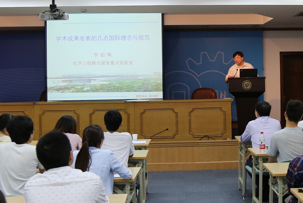 为引导青年教师刊发高质量论文,启发研究生论文写作思想。6月6日下午化工学院特邀浙江大学*、工学部主任李伯耿教授来徐汇校区逸夫楼演讲厅作了题为《学术成果发表的几点国际理念与规范》的学术报告。报告会由化工学院院长赵玲老师主持,化工学院党委书记李涛、党委副书记高艺霞、化工学院副院长刘殿华、赵双良等100余名师生共同聆听了报告。