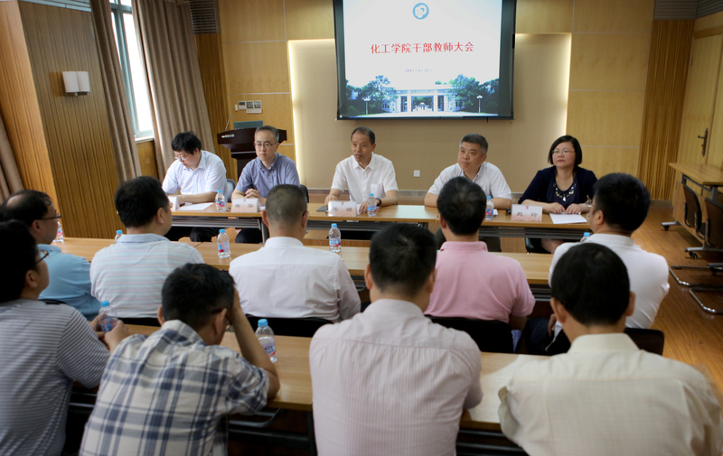 6月1日上午,化工学院召开教师干部大会,宣布学校党委关于化工学院党政主要负责同志调整的决定。校党委副书记陈麒出席会议并讲话,党委组织部副部长兼党校常务副校长柴华主持会议,化工学院党政领导班子全体成员、系所中心负责人以及教师代表与会。