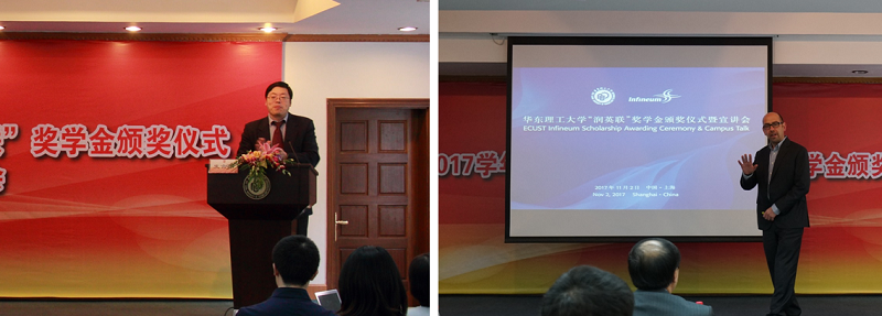 颁奖仪式上,首先朱学栋教授致欢迎辞,他代表学院对润英联嘉宾们的到来表示了欢迎,也对奖学金的捐赠表达了谢意。同时他还对同学们取得的成绩表示肯定和热烈的祝贺。正值学校65周年校庆,希望同学们薪火相传,脚踏实地,砥砺前行,成为厚基础、强实践、高素质、具有创新精神和国际视野的化工英才,利用在华东理工大学所学到的知识和获得的能力服务公司、回馈社会、造福人类。