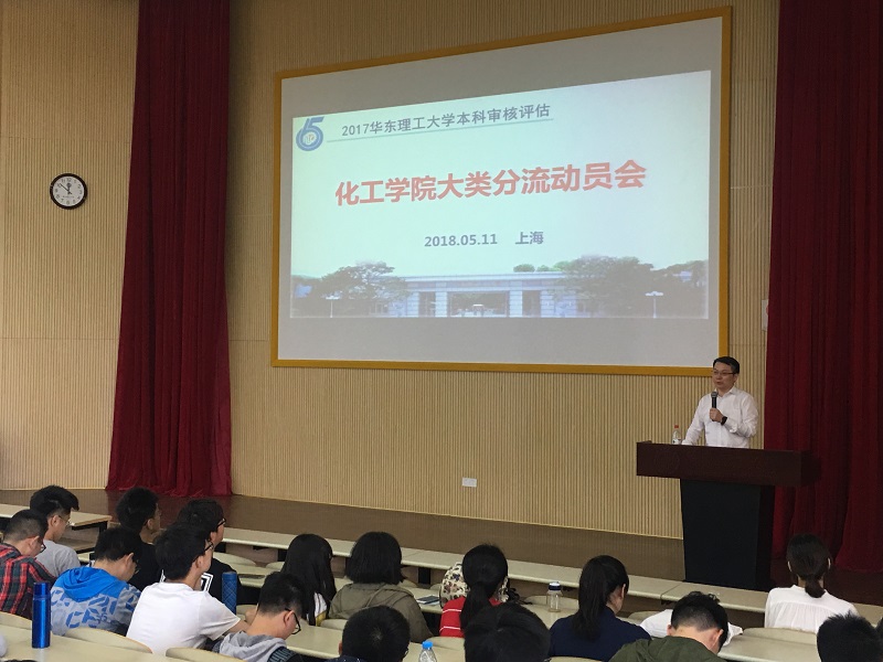 5月11日中午,化工学院在奉贤校区A200召开2017级“化工与制药类”大类招生专业分流宣讲会,教学副院长赵双良为2017级学生详细解读了专业分流政策及方案。会议由2017级辅导员姜贤武主持,团委老师王梦雪、2015级辅导员刘宗慧出席。