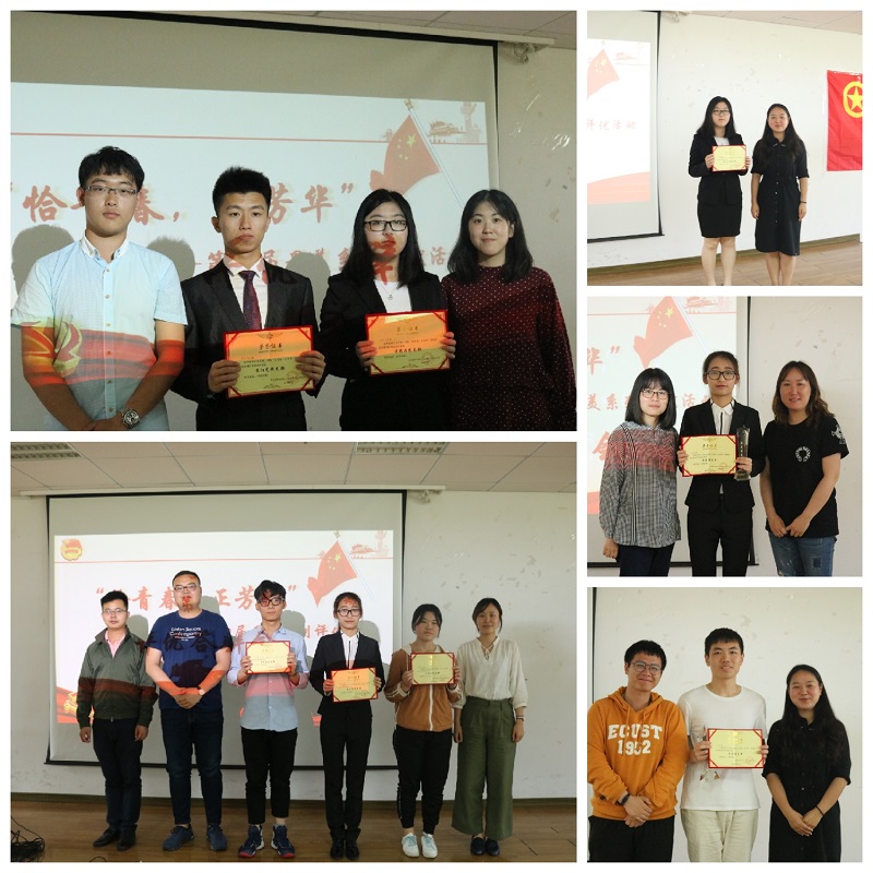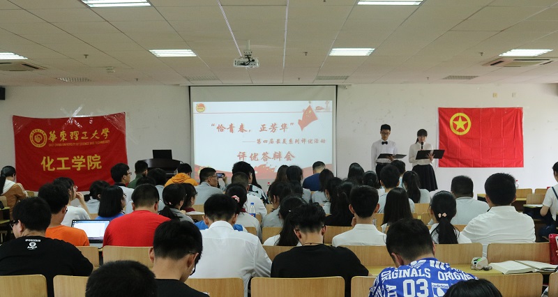 为更好地贯彻落实团中央关于加强团组织建设,增强基层团组织联系的政策方针,丰富当代大学生课余生活,增强团支部凝聚力,化工学院团委组织开展“恰青春、正芳华”最美系列团建评优表彰。经过初审材料审查以及微信投票,最终筛选出十个团支部、六位团支书,于2018年5月13日开展最美评选答辩。来自化工学院对口团建的两所中学的师生代表观摩了本次活动,奉城中学党支部副书记王明儒、团委书记兼政教副主任陆慧、鲁迅中学团委书记苏莉丽、社会学院团委书记严任舟、化工学院团委书记王梦雪、化工学院15级辅导员阿曼、刘宗慧、17级辅导员姜贤武出席答辩会并担任评委。