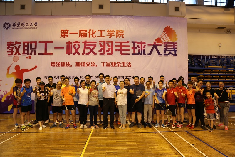 为加强校友与学校的联系,化工学院于6月9日在体育馆二楼举行了第一届教职工-校友羽毛球大赛,校友发展与联络处副处长王芝眉,化工学院党委书记、院长朱学栋,化工学院党委副书记高艺霞,化工学院工会主席朱志华出席了活动,40余名教职工与校友参加了比赛。