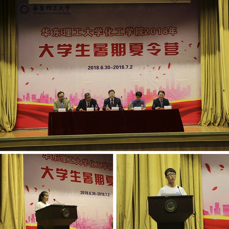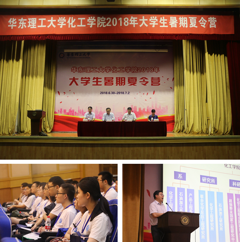 6月30日-7月2日,华东理工大学化工学院成功开展2018年暑期大学生夏令营,来自全国27所高校的114名学生参加了本次夏令营。本次夏令营开幕式在逸夫楼报告厅举行,化工学院党委书记、院长、教育部大型工业反应器工程研究中心主任朱学栋教授、副院长兼重点实验室主任周兴贵教授、石油加工研究所所长刘纪昌副教授、化学工程研究所副所长马晓华副教授出席开幕式。开幕式由化工学院副院长刘殿华主持。