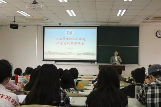 525日中午,化工学院2019年推免研究生政策系列宣讲会的首场于华东理工大学奉贤校区B101顺利召开。化工学院副院长刘殿华教授、副院长赵双良教授、副院长兼重点实验室主任周兴贵教授参加了会议,李扬老师主持了会议。