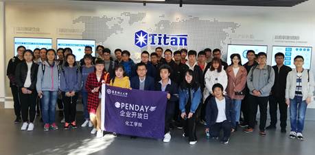 活动当天,“泰坦”销售总监马琳杰老师带领化工学院访问学习团队参观了泰坦创新研究院,依次介绍了泰坦精神、企业信条、泰坦征途等。泰坦名称源于骑士团精神,指引泰坦人感恩、忠诚、永保激情、为企业的荣誉而奋斗!