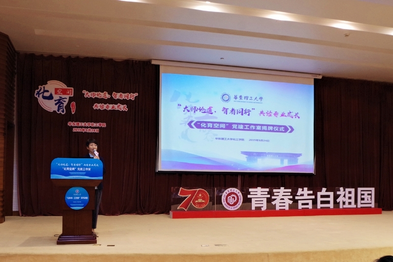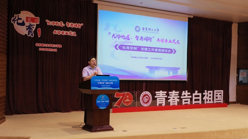 9月24日晚,化工学院于奉贤校区敬贤堂成功举办“化育空间”党建工作室揭牌仪式暨“化未来工青春”系列讲座大师首讲活动。荷兰皇家科学院院士Martien教授,化工学院党委书记朱学栋,校党委教师工作部副部长张雪芹,“化育空间”工作室负责人、“双带头人”党支部书记赵世成出席活动,化工学院党委青年教师代表、学生党员代表及全体2019级新生参与本次活动。揭牌仪式由化工学院党委副书记高艺霞主持。