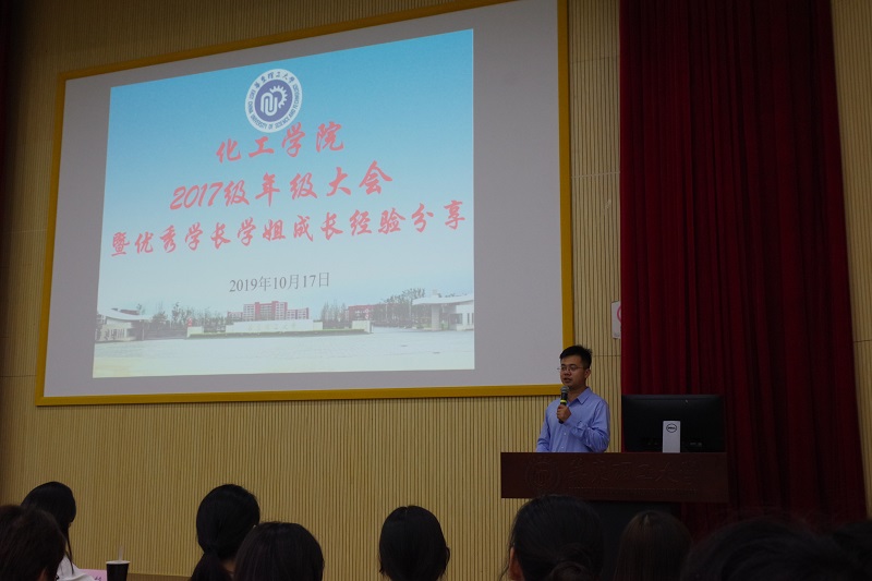 为落实立德树人根本任务,加强对学生的理想信念教育,推进学风建设,引导学生健康发展,10月17日晚,化工学院于A200教室召开2017级年级大会暨优秀学长学姐成长经验分享会,大会由辅导员姜贤武主持,400余名17级学生参加。