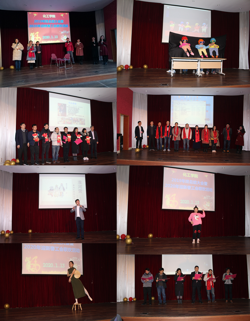 在2019年新入会会员教师上台自我介绍及合唱《我和我的祖国》歌声中,2020年全院会员交流活动拉开序幕,党委书记朱学栋、院长李春忠为新人们送上了新春祝福及鼠年吉祥物。各工会小组奉上了精心准备的节目,联欢会上气氛热烈,院办老师的小品《工作咏叹调》、石油加工系的情景剧《小矮人舞》、姜贤武老师的京剧《淮河营》、赵方老师的舞蹈《Nobody》、宋楠老师的舞蹈《渔光曲》等丰富多彩的节目充分展示了教师们多才多艺、热爱生活的一面。活动中朱学栋为每位本命年教师献上祝福和红围巾。表演、抽奖、猜灯谜游戏等将现场活动气氛一次次推向高潮,活动在化工系教师自编的《化工之歌》的歌曲声中完美落幕。