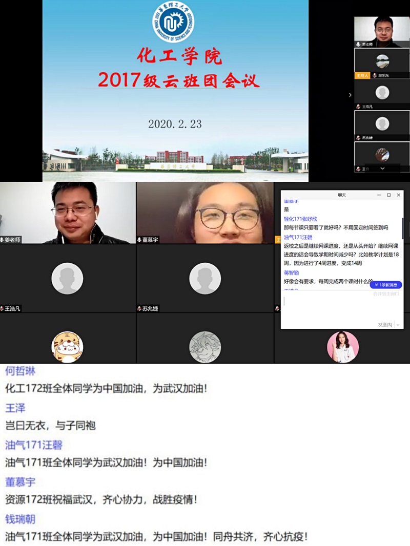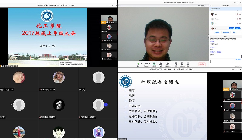 为积极响应学校“停课不停学“的号召,为线上开学做好更充分的准备,保障年级各项工作有序开展,化工学院2017级通过腾讯会议平台分别于2月23日、2月29日召开了云班团会议和年级大会,共计400余名学生参加会议。