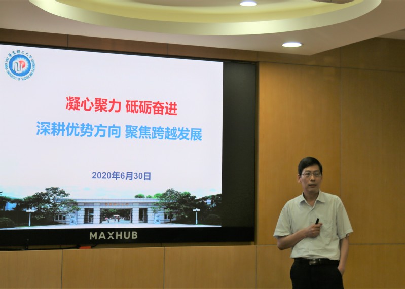 630日,化工学院于实验十六楼108会议室举行科技创新大讨论会议。副校长钱锋、李涛出席会议。化工学院党政领导班子、院学术委员成员、研究所所长以及学院青年骨干教师参加了会议。会议由化工学院党委书记朱学栋主持。