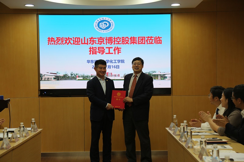 首先,朱学栋代表学院对京博集团的到访表示热烈欢迎,他表示企业高管进高校,对推动校企合作,实现推动教育创新、助力科技进步有着重要作用。随后,朱学栋代表学院向马韵升颁发了化工学院本科教学指导委员会聘书,衷心希望企业专家能从自身视角出发,为化工类专业的课程体系建设、人才培养目标指出方向。