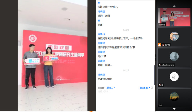 一场直播,云游校园。在学校学习生活了6年的研究生陈永灏,通过直播平台开展云游校园的互动讲解;在主播的带领下,从学校南门到快递中心、宿舍,打卡网红食堂,参观化工学院实验室,再到研究生院,通过搭建覆盖广、细节全的线上线下迎新服务平台,让研究生新生熟悉校园环境,了解校园文化。