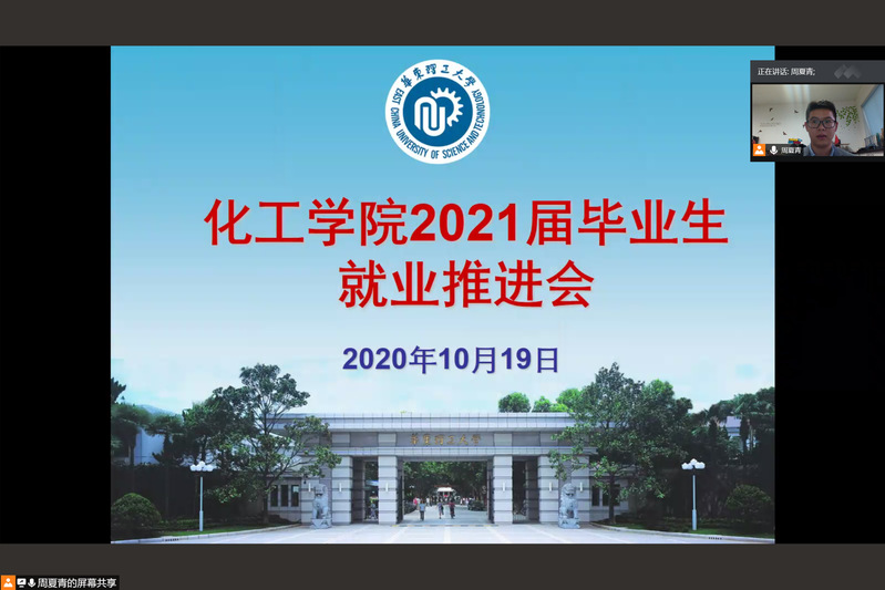 10月19日下午,化工学院2021届毕业生就业动员会在线上召开,以帮助应届毕业生认清当前就业形势,确保就业大局稳定。华谊新材料人事经理瞿红、校就业指导中心副主任盖钧超、2020届硕士毕业生马翀玮、2020届本科毕业生杨鑫鑫应邀出席,参加会议的还有学院就业辅导员于靖和周夏青。会议通过B站平台在线直播,学院800余名本研毕业生实时收看,直播人气更是高达5700余人次。