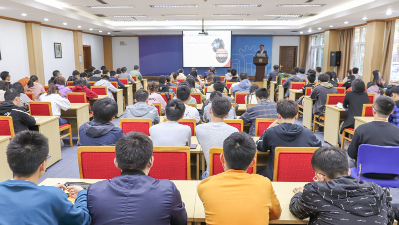 吕南停以黄浦区成功创建首批全国法治政府建设示范区实践为例,围绕打造国际化大都市的法治新高地作了精彩的报告。报告主要包括党的十九届五中全会对全面推进依法治国的新要求、坚持全面依法治国的重大意义、打造国际化大都市法治新高地的实践等4个方面。他通过一系列生动形象的实践案例,分享了推进法制建设和实现治理能力现代化过程中的好办法、好方案、好成果。作为化工学院的校友,他以学长的身份勉励广大研究生在新时代主动作为、拓宽视野,树立规则意识、践行契约精神、坚持底线思维,不断加强培育法治思维、提升法律意识、提高人文素养,成为德智体美劳全面发展的高素质人才,为祖国建设贡献自己的力量。