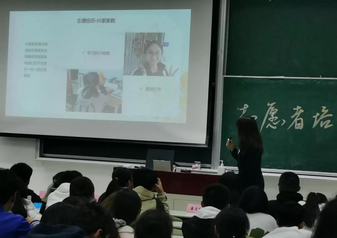 在优秀志愿者分享环节,2019年度校优秀志愿者崔玥晗通过和同学们分享她在参加兴家家教志愿活动中的一些经历体验,阐述了她在志愿过程中的心得与体会,使同学们感受到了志愿服务独特的魅力。