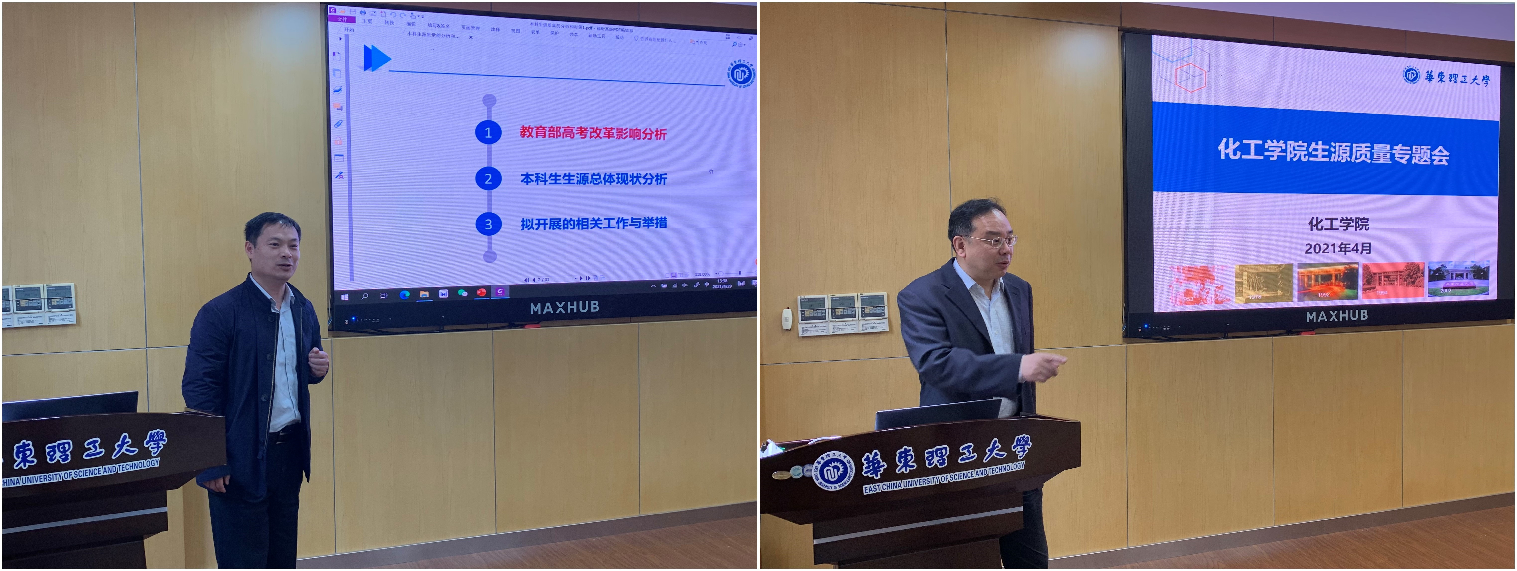 郭旭虹从教育部高考改革影响分析、本科生生源总体现状分析、拟开展的相关工作于举措等方面,做了本科生生源质量的分析和对策。刘殿华从总体情况、推免生、统考生、博士生生源等方面,详细分析了近五年我院研究生招生的体量和质量,同时就研究生招生宣传方案讨论稿,向在座教师作了汇报。