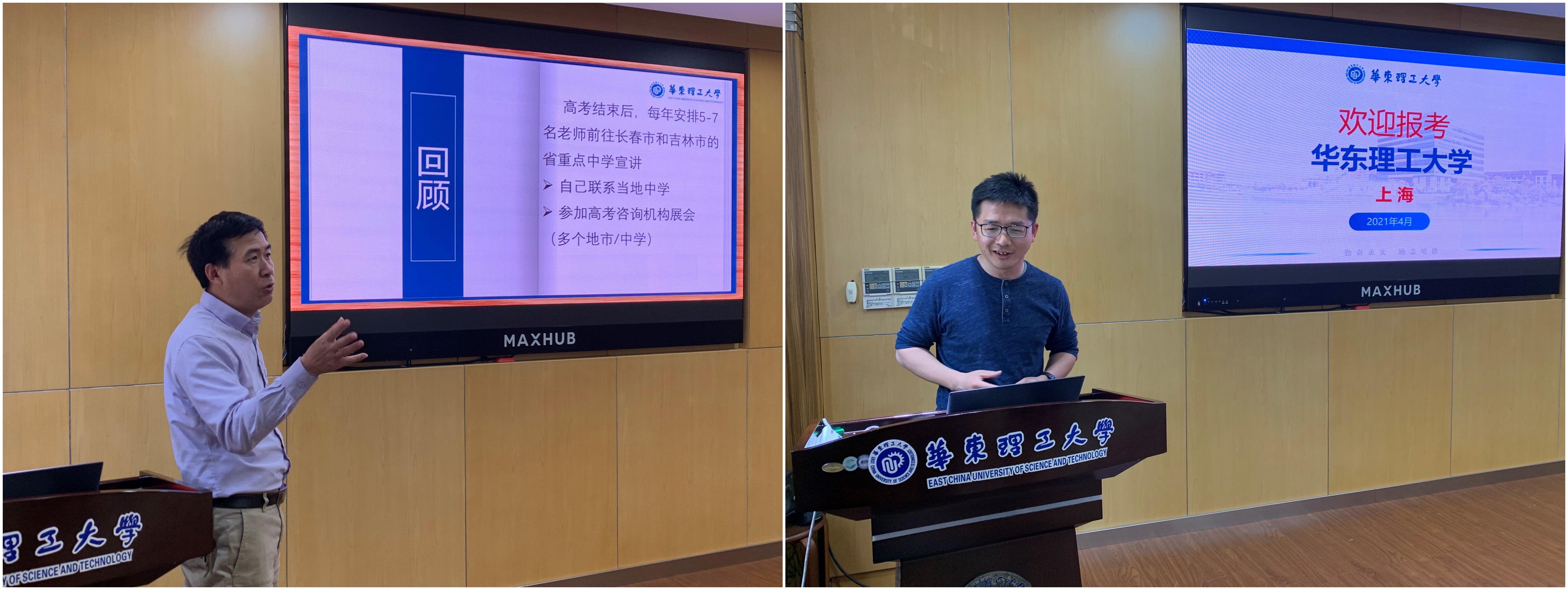 欧阳福生和张相洋,分别介绍在黑龙江和吉林开展招生宣传的工作情况。两位老师带队,一举为学校签下多个优质生源基地,为学校的本科生招生宣传做出了较大贡献。但由于招生宣传队伍人数少,工作强度非常大,两位老师也呼吁更多青年教师也积极参加到招生宣传中来。