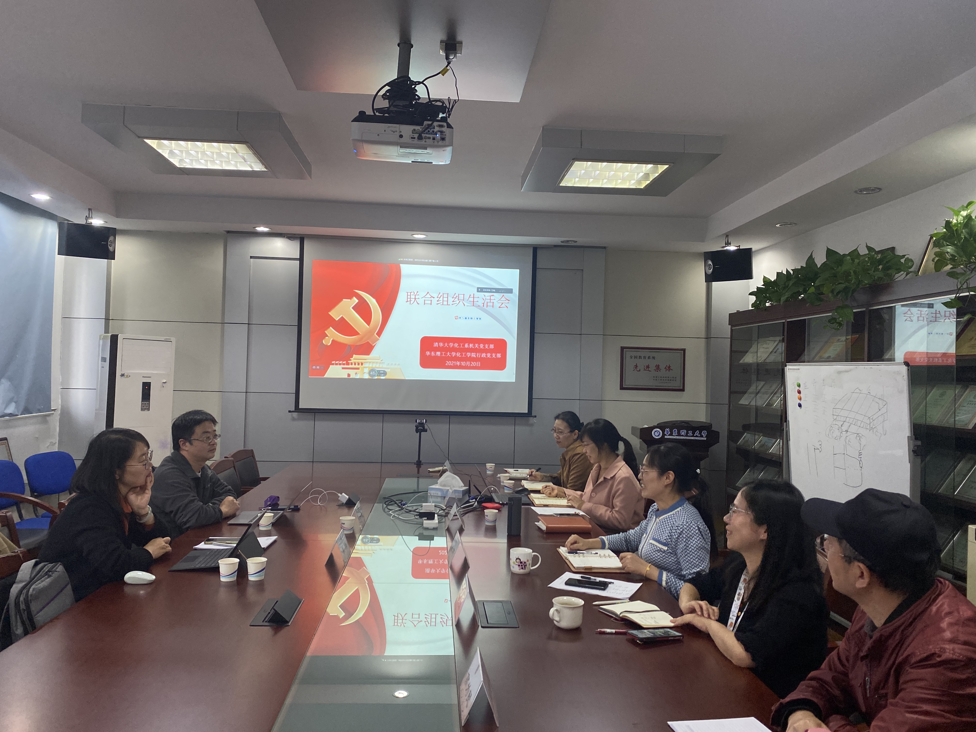10月20日下午,清华大学化工系机关党支部与华东理工大学化工学院行政党支部通过线上线下相结合的方式开展联合组织生活。清华大学化工系综合办主任王婉莹通过视频参加座谈,清华大学化工系机关党支部书记慕璘一行来访出席交流。院党政办公室主任、行政党支部书记孙莉等接待了来宾。双方学习了习近平总书记在中央人才工作会议上重要讲话精神,围绕党支部建设、行政管理、团队建设等方面进行深入交流。