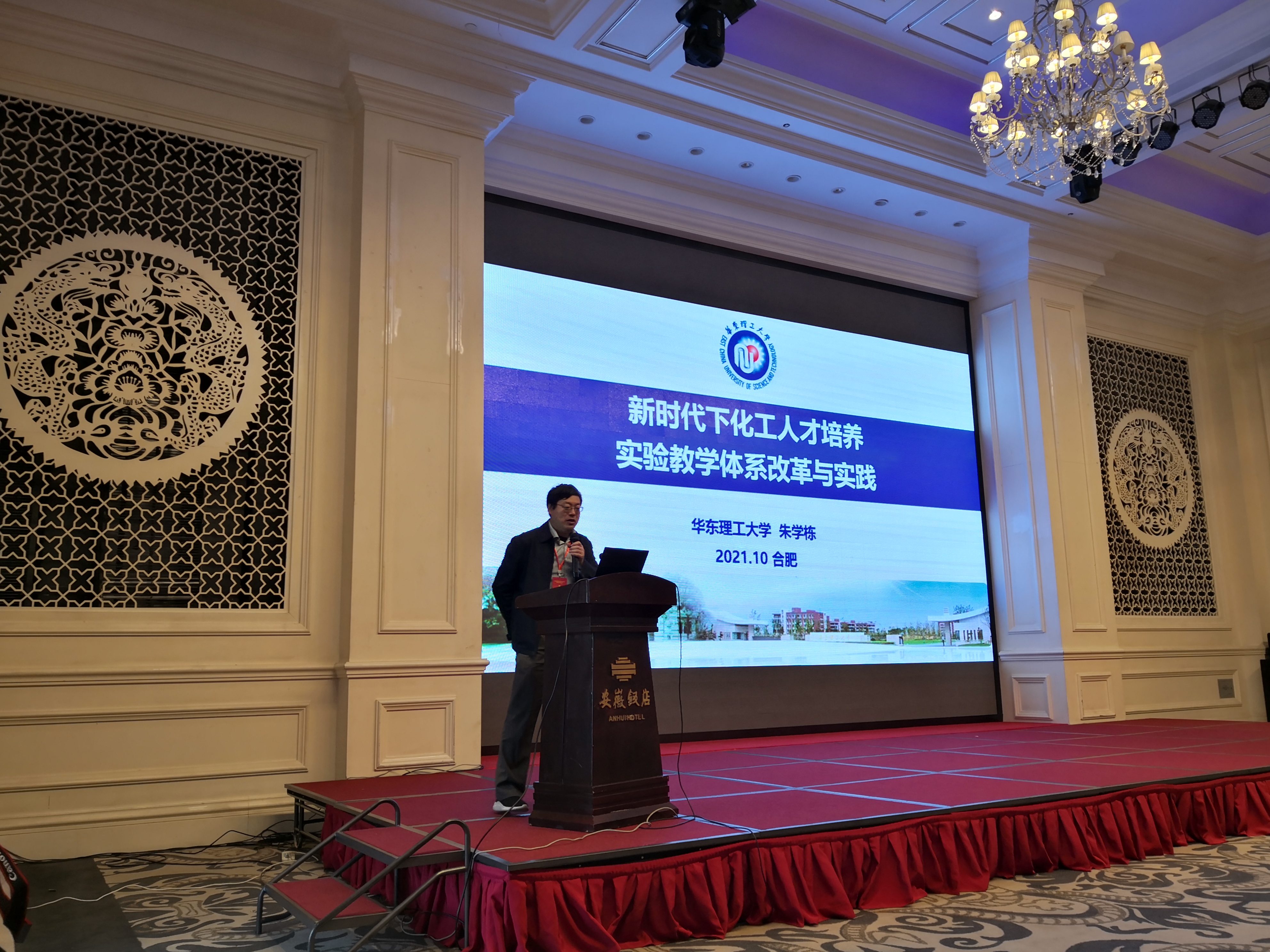 化工学院党委书记、化工实验教学中心主任朱学栋教授带队参加了本次研讨会,并做题为“新时代下化工人才培养实验教学体系改革与实践”的大会报告。报告主要介绍了,在“双碳”战略实施及“新工科”理念实践的背景下,为积极响应国家号召培养高质量人才,我院在化工专业实验教学的改革与探索中,通过重构多层次、模块化实验教学体系,将科研成果融入实验教学,开展探究式、自主式学习等方式,逐步提升学生解决复杂工程问题能力。我们还通过建设“绿色”实验案例,构建风险评估-安全准入-动态检查机制,在加强实验室安全管理的同时,厚植绿色发展观。