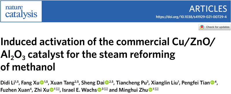 近日,国际权威学术期刊《自然-催化》(Nature Catalysis)以 “Induced activation of commercial Cu/ZnO/Al2O3 catalyst for steam reforming of methanol”为题,在线报道了英国上市公司365化工学院化学工程联合国家重点实验室在甲醇水蒸气重整制氢领域的最新研究成果。