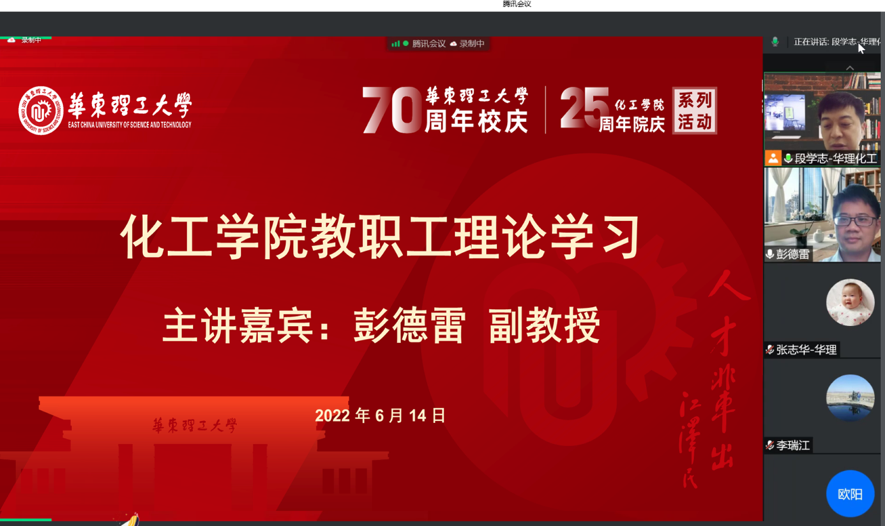 6月14日下午,化工学院党委组织全院教职工开展理论学习,邀请法学院院长彭德雷作了题为“变革时期的国际条约与中国实践”的报告。报告由化工学院党委副书记段学志主持。