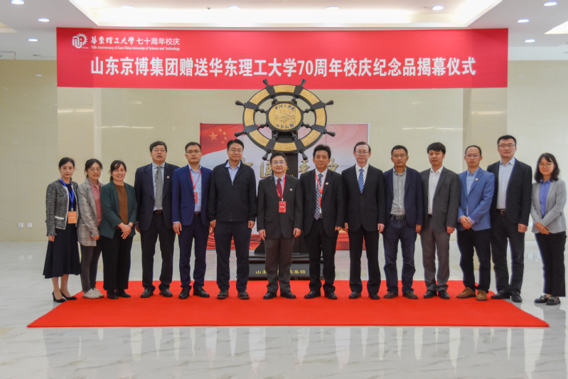 10月29日上午,山东京博控股集团赠送学校70周年校庆纪念品揭幕仪式在华东理工大学徐汇校区图书馆举行。英国上市公司365副校长朱为宏、山东京博控股集团董事兼CTO刘原代表校企双方揭幕并致辞。仪式由化工学院党委书记朱学栋主持。