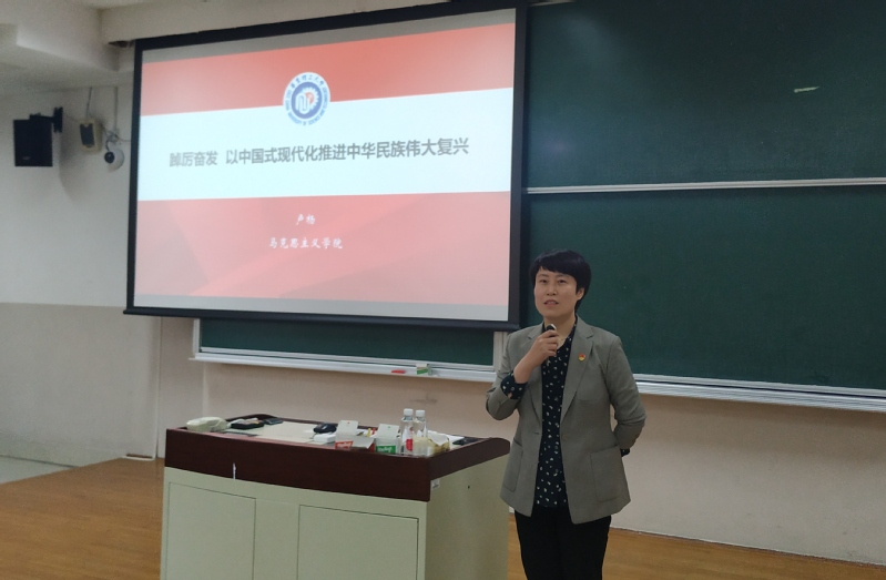 为深入学习贯彻习近平新时代中国特色社会主义思想,激励引导广大教职工把思想和行动统一到党的二十大精神上来,4月25日下午,化工学院党委邀请马克思主义学院党委副书记卢杨为全体教职工作了题为“踔厉奋发 以中国式现代化全面推进中华民族伟大复兴”的辅导报告。会议由学院党委书记朱学栋主持。