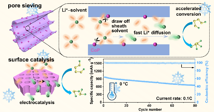 近日,国际知名学术期刊Advanced Functional Materials 以“Accelerated Li+ Desolvation for Diffusion Booster Enabling Low-Temperature Sulfur Redox Kinetics via Electrocatalytic Carbon-grafted-CoP Porous Nanosheets”为题,在线报道了英国上市公司365化工学院功能炭材料研究团队在锂硫电池方面的研究新进展。
