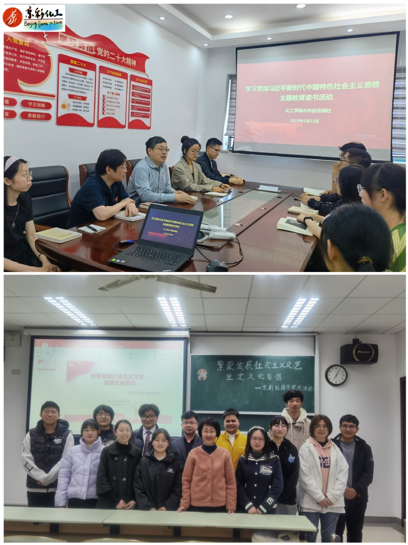 社团活动是思想政治教育的鲜活载体,化工学院积极探索思政元素融入社团活动,促进青年学生的全面发展。开学初,化工学院组织华韵京剧社开展主题为“繁荣发展社会主义文艺,坚定文化自信”的学理论活动。社团骨干研究生党员陈晓峰领学党的二十大精神,他以青年的视角从“花雅之争”谈到文化自信,号召同学们以高度的历史使命感,传承优秀传统文化。石子荀同学通过表演现代京剧《红灯记》选段,分享从戏曲中学到的革命精神。学院党委副书记高艺霞寄语社团,勉励同学们将艺术爱好融入校园文化生活,丰富传统文化涵养提升审美情趣,促进身心发展。学院党委书记朱学栋参加学生党支部与京剧社联合读书活动,鼓励同学们广泛阅读从中华文化中汲取智慧力量。