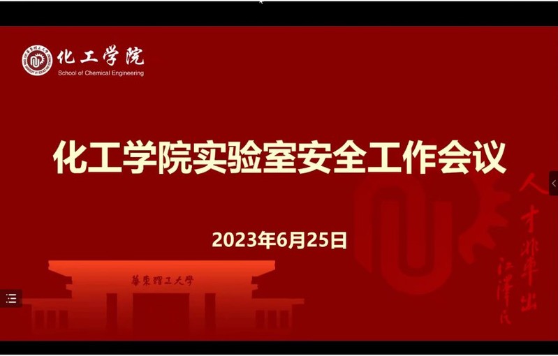 为认真贯彻落实习近平总书记关于安全生产重要指示精神,6月25日,化工学院召开“安全生产月”专题工作会议。会议以腾讯会议和B站线上直播的方式同步进行,学院党政班子成员、1800余名师生参加。会议由学院党委副书记高艺霞主持。