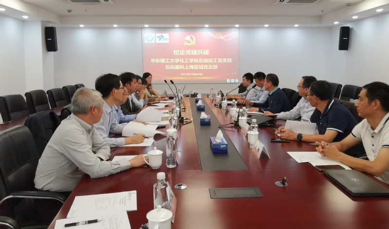 为深入学习贯彻习近平新时代中国特色社会主义思想,进一步探索创新党建工作,丰富主题教育基层党支部的学习形式。10月24日下午,石化盈科上海区域支部书记冯新国、支部副书记王建平等一行6人来访华东理工大学化工学院,与石油加工教工党支部签署党建联合共建协议,参加党建共建及技术交流活动。化工学院党委副书记段学志、石油加工教工党支部书记孙辉以及支部教师代表等参加此次活动。