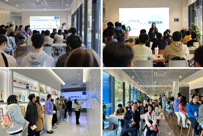 最后一站,师生来到林德总部。林德大中华区副总裁、人力资源部负责人毛凌云,清洁氢能业务发展总监Lawrence Koh等先后带来精彩分享。同学们与林德进博会展台现场连线,在主持人的带领下共同感受林德亮相第六届中国国际进口博览会的精彩呈现,深入了解林德的创新实力和技术底蕴。最后,师生参观了林德企业文化墙与办公区,感受林德多元化和包容性的企业文化,了解员工福利、职业发展计划等,赋能学子职业发展规划。