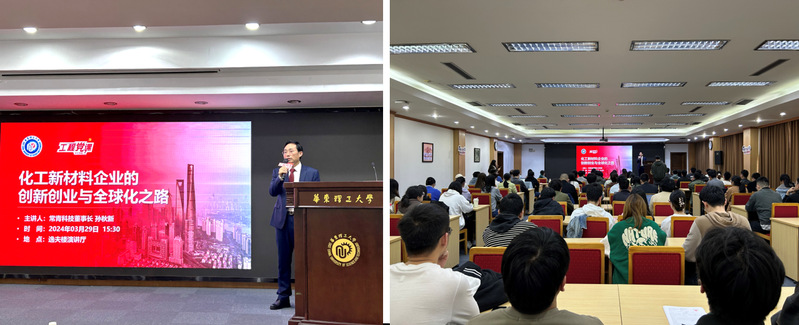 孙秋新先生结合企业发展为在座师生详细解读“新质生产力”的内涵,创业过程中战略布局思路,技术研发守正创新之路以及产业全球化面对的机遇与挑战等。孙秋新还结合具体产品开发案例,告诉大家企业是如何在化工新材料领域落实创新理念,促进科技与产业融合与高分子材料的生活化运用,推动我国化工产业的高质量发展。讲座过程中尽显企业家的责任与担当。最后,孙秋新先生结合当代大学生实际情况,用生动质朴的语言阐述了青年党员贵在勤奋、重在立志,唯有认清自我方能以青春奋斗奉献祖国。这也恰与华东理工大学“立大志、明大德”的育人目标相契合。党员们在认真听讲后结合时事热点与自身思考向孙秋新董事长提出自身疑惑,孙董事长详细地为同学答疑解惑,现场气氛活跃。