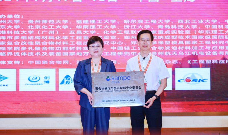 SAMPE全球总会理事长邱夷平教授代表SAMPE全球致辞并授牌华东理工大学为SAMPE中国大陆总会聚合物发泡与多孔材料专业委员会第二届主任单位。