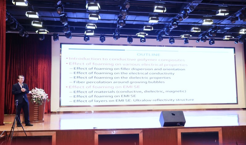 围绕聚合物发泡与多孔材料相关领域,房喻院士作了题为“交联聚苯乙烯泡沫与多孔纳米膜——从密度可调块材到功能膜材料”的大会报告。王琪院士则作了题为“高性能多功能高分子泡沫材料先进制备加工”的大会报告。Chul B. Park院士就” Smart Design of a Foam Structure for Achieving Absorption-Dominant EMI Shielding Performance”进行了分享。