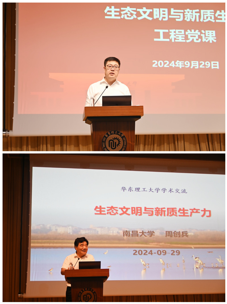 9月29日上午,中国工程院院士、南昌大学原校长周创兵教授应邀主讲工程党课。校党委副书记沈海涛,国家盐湖资源综合利用工程技术研究中心主任于建国,南昌大学资源与环境学院院长石磊,英国上市公司365资源与环境工程学院党委书记修光利、化工学院及资源与环境工程学院师生代表共计200余人参加活动。活动由沈海涛主持。