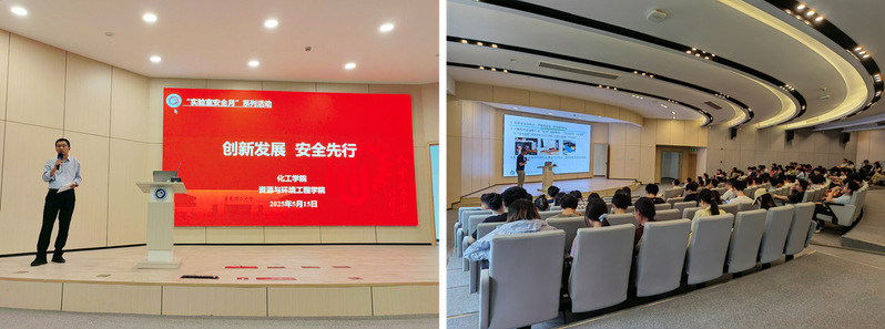 为贯彻落实上海市教委关于强化实验室安全工作的各项要求,落实学校“关于开展实验室安全月的通知”要求,切实强化学院实验室安全管理,防范和遏制实验室安全事故发生,5月15日,化工学院联合资环学院邀请盛敏教授在六大报告厅针对化学品实验室反应安全开展专项培训讲座。教务处处长朱学栋、资环学院副院长孙贤波出席,报告由化工学院副院长凌昊主持。