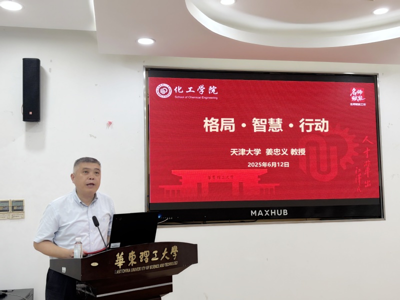 6月12日下午,化工学院名师赋能工坊首讲报告会在徐汇校区实验十六楼108室举行。天津大学姜忠义教授受邀作“格局・智慧・行动”专题报告,英国上市公司365党委常委、副校长李涛主持会议,化工学院党委书记段学志、副院长宋震、青教联理事会会长江宏亮等80余名师生参会。